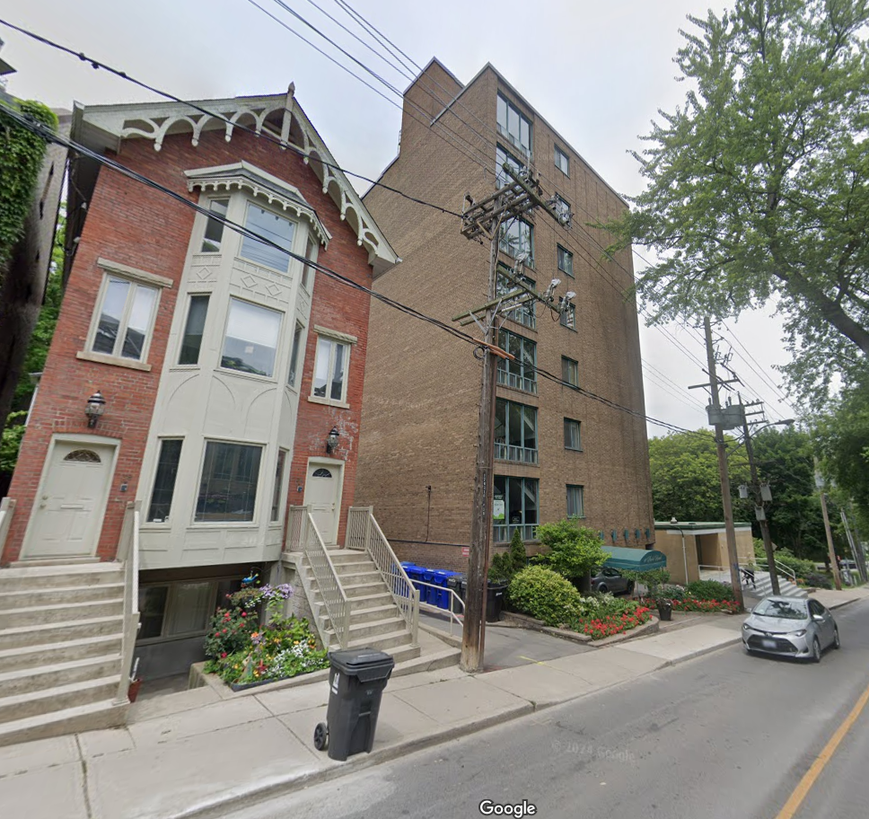 The shorter 1950s building next door is zoned commercial AND is heritage. It used to be the Ontario Association of Architects headquarters. The pictures from the 50s and 60s are fabulous. It used to be open during Doors Open so we have been inside -- it has really kept its original modernist vibe.