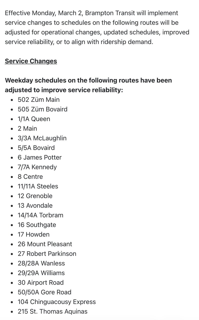 This now means that route 5/5A Bovaird has more frequent service in all weekday periods than Route 505 which is honestly sad to see.