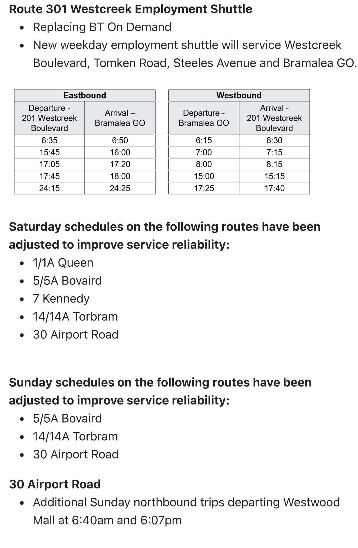 Schedules adjusted to align with GO Train times at Bramalea GO