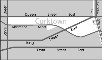 Corktown's definition seems to have changed over the years (and still does depending on who you are talking to). When I lived at Richmond/Sherbourne (early 2000s), everyone called it Corktown. Now most seem to think of it beginning a little east of there.