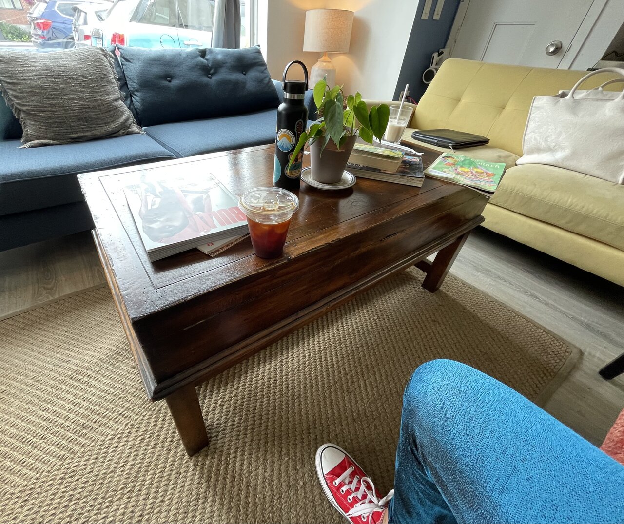 I'm familiar with Found Coffee right across the street. Went there once last summer. It's not cozy at all - it's tiny, cramped, and just has a couple of high chairs by the window, so it really is just a grab and go place, not somewhere you can linger and relax. And again with the cursed bright white...