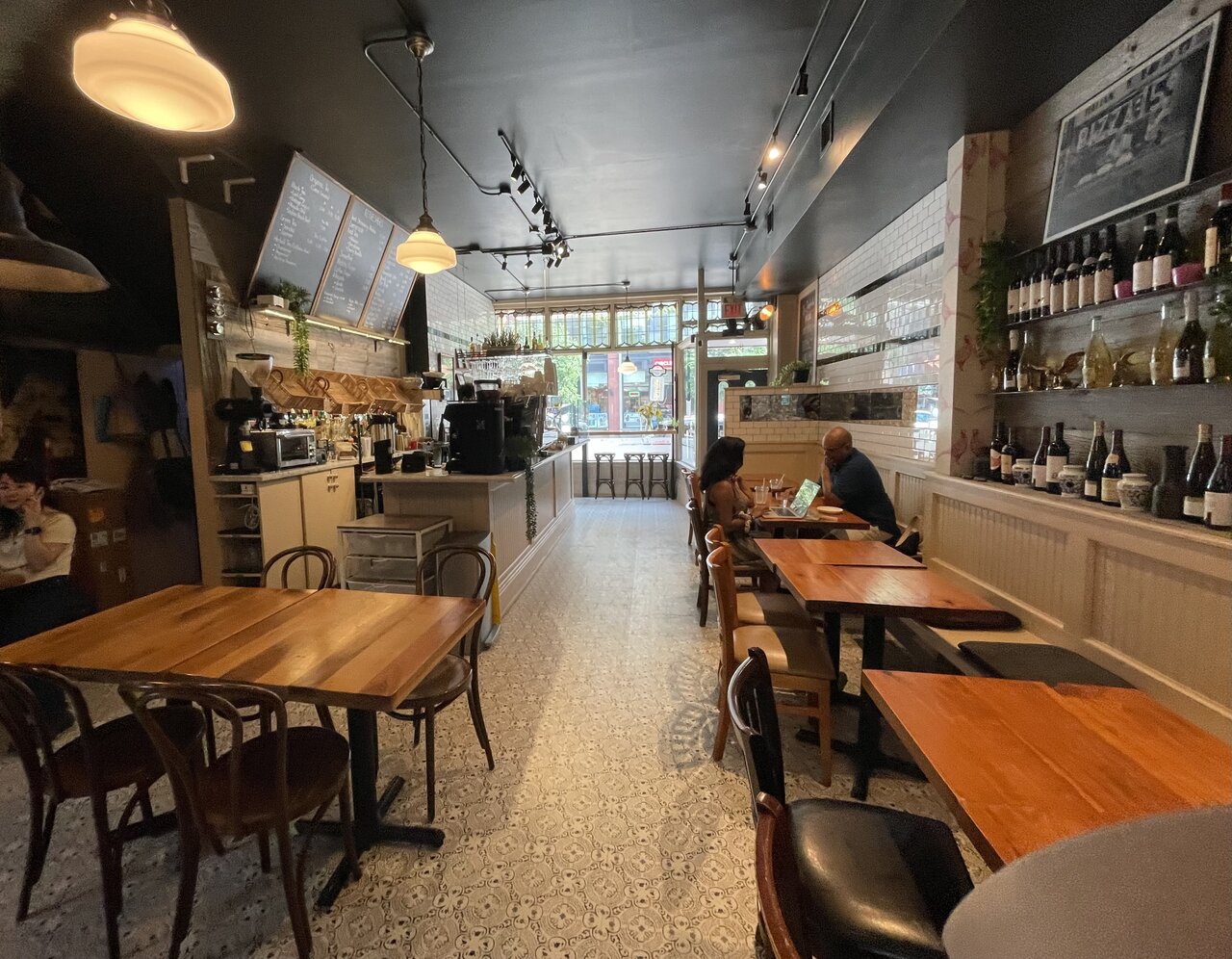 No couches, but there is cushioned bench seating along one wall. And just look at all the thoughtful design details everywhere - they clearly put a lot of effort into the aesthetics, and I strongly appreciate that. That's why I find places with large, sparse, white surfaces quite offensive. It's utterly lazy, unimaginative and cheap.