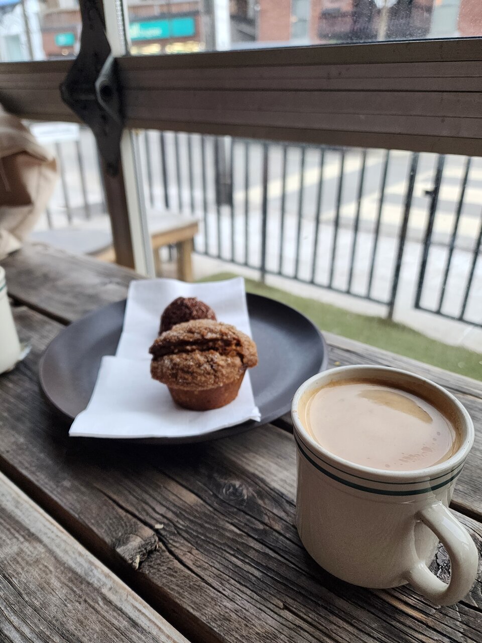 The patio is really pleasant in the summer and the whole side of the building opens up, so it's just like being outside. Wonderful place. You can get a freshly baked croissant and some fresh fruit compote for about $5, which is a steal these days.
