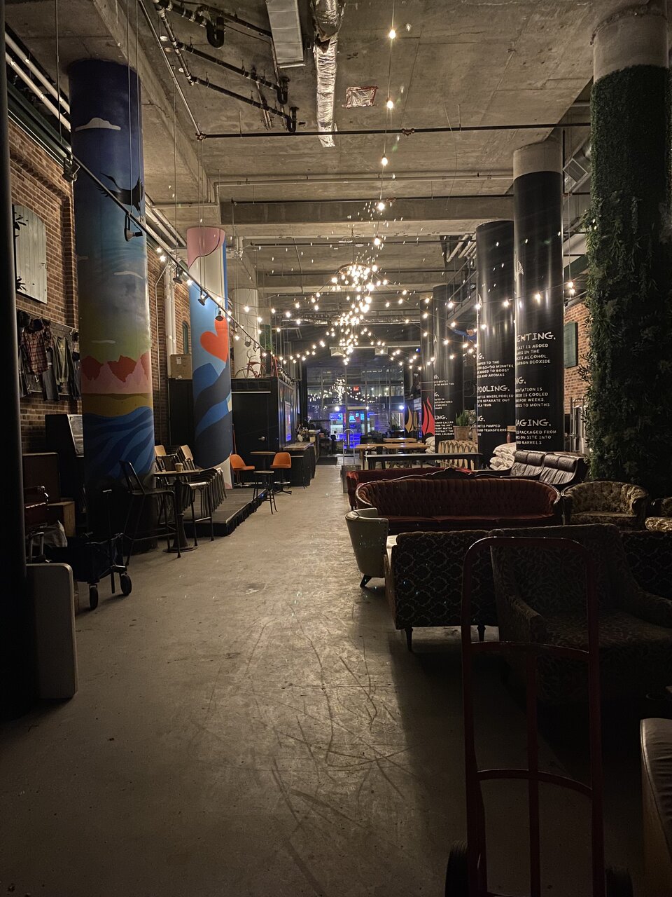 Cacao 70s parent company went under. Someone had said the Distillery Restaurant Group was going to put in a burrito joint. It seems that District Pizza did well enough to expand a little in providing cheaper eats and a place to sit down inside so… but they just put in a donut booth outside Sweetie Pie (they must have been thrilled) that looks pretty sloppily put together. They also seem to really be going in on the Illuminarium exhibit, building stuff in the fermenting cellar and plastering temporary vinyl signage on everything.
