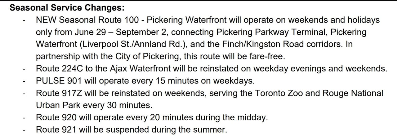 First, it's official starting Jun 24, the City of Pickering is partering to provide service to the waterfront only weekends/holidays free of charge. Here are all the upcoming changes: