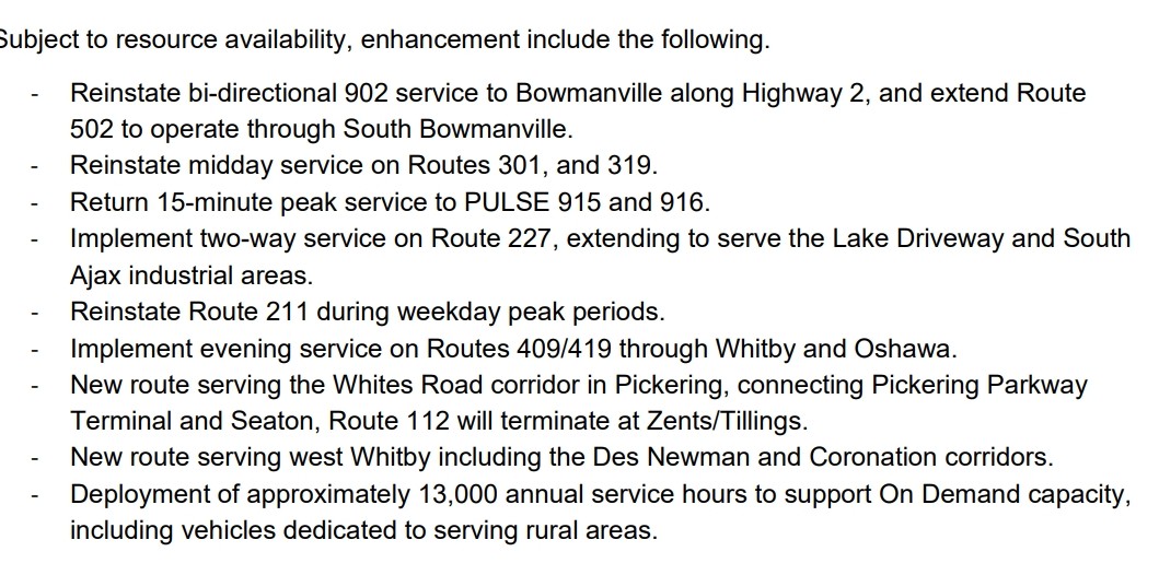 They are planning a new route from Pickering Parkway Terminal to Seaton via Whites Rd. Depending on the routing it may provide more local coverage where it was lost in January.I’m surprised there’s no mention of restoring all the local service that was cut in Pickering this past January. There was quite an uproar over that. I’m hoping they’ll be enough funding come 2025 to get more service on packed routes (i.e. the 905/920)
