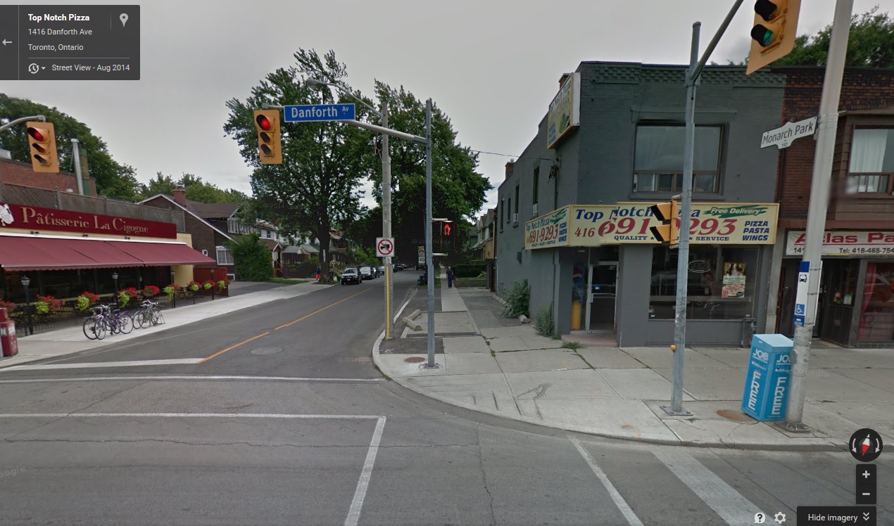 ^ I assume that there are cost implications which might preclude a second entrance on Danforth (also odd to have the main entrance on a side street, and the unstaffed second entrance on Danforth). I suspect it is cheaper to screw over one or two homeowners and expropriate their lots on a side street.