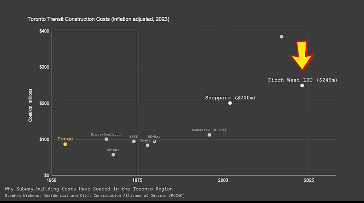 I'd be more concerned as to why Finch costs way more the similar projects like Edmonton's Valley Line, which are built in the same era, with similar specs but are far cheaper per km