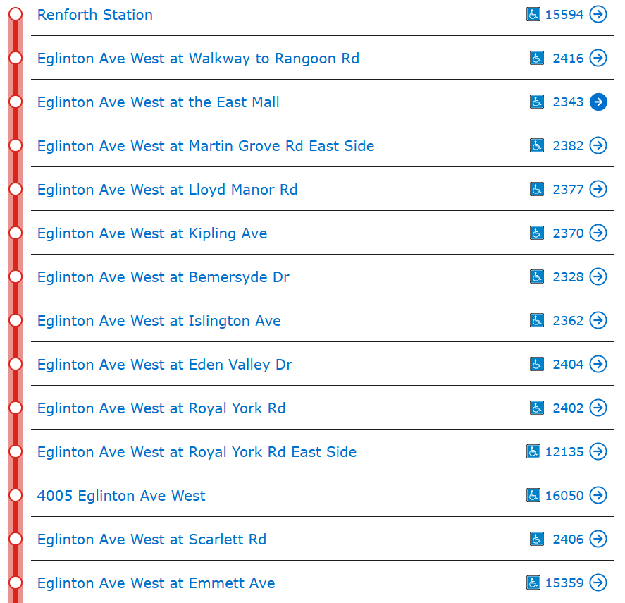 To be honest, I'm really surprised at how few stops there are on the 32 Eglinton West bus! The bus is very similar to the underground Line 5 stops - so no surprise a surface version would be similar to the bus too!
