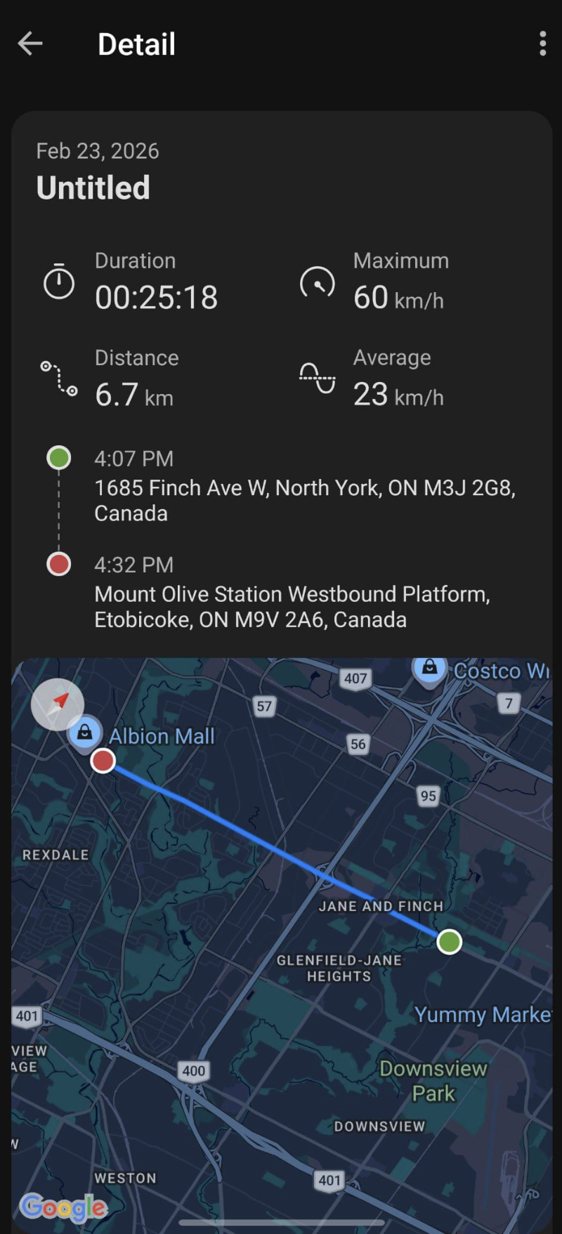 Now, if we extrapolate those speeds across the portion that presumably doesn’t have signal priority implemented (Milvan Rumike to Finch West), it will take 14 minutes to travel the 5.5 km.