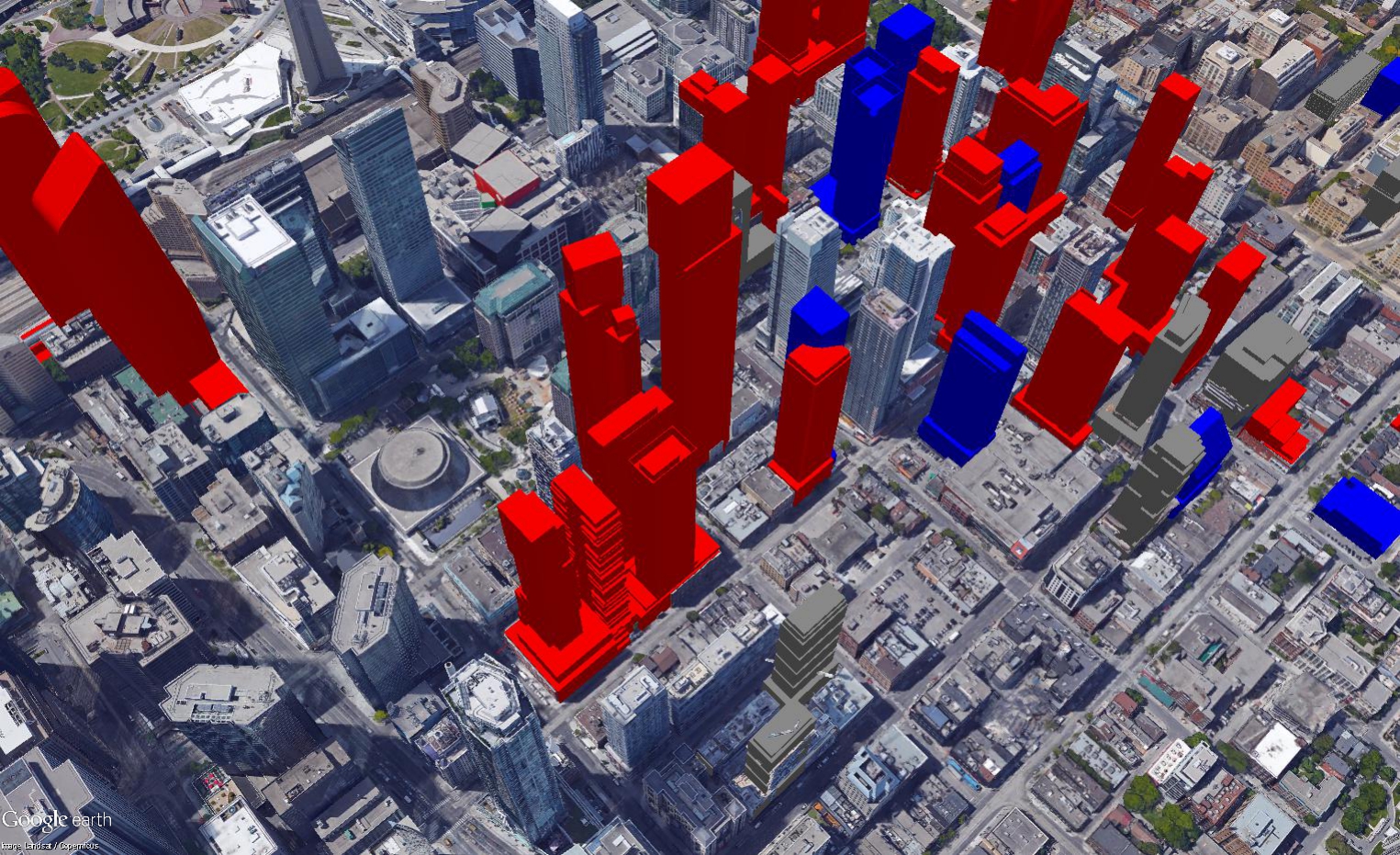 The entire block bounded by Duncan, Adelaide, Pearl, and Simcoe in the entertainment district now has development applications filed. Insane density proposed there, and everywhere else in the entertainment district for that matter. There are a lot of applications in the area, but it appears that few of them are actually progressing to construction. 19 Duncan and 357 King West are both rental proposals so they should move soon, and a couple of condos seem to be preparing to launch, but there are still a lot of red buildings here compared to what the market can likely absorb.