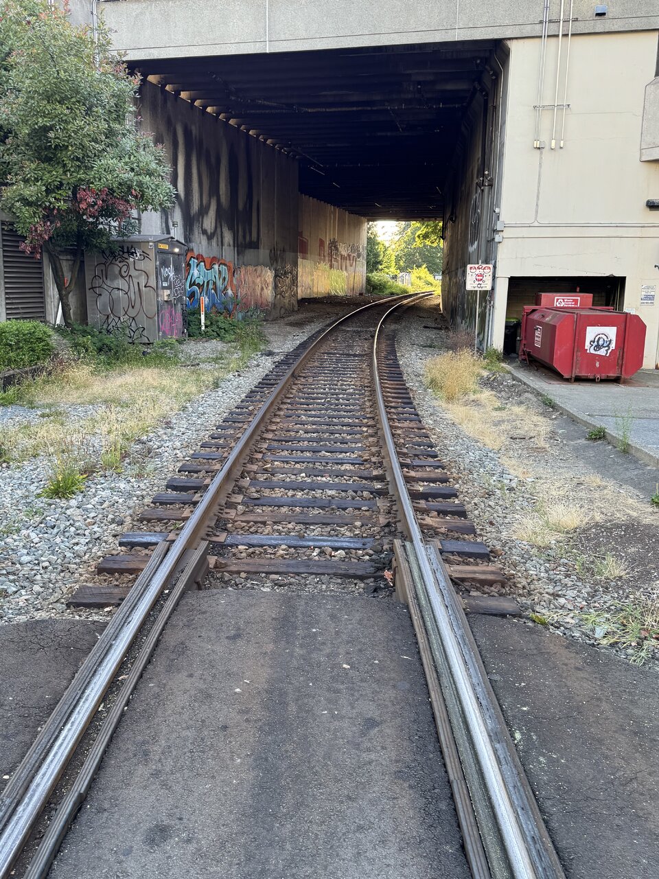 Staying in North Vancouver, the Shipyards Area, for a few days and kept hearing train noises at odd times. So when I had a break I went walking and then consulted the CN atlas after barely seeing cargo moving through the area. The line originates in Prince George and swings through West Van, then North Van on its way to crossing the inner harbour closer to Burnaby. I am sure this has a name and someone will educate me.