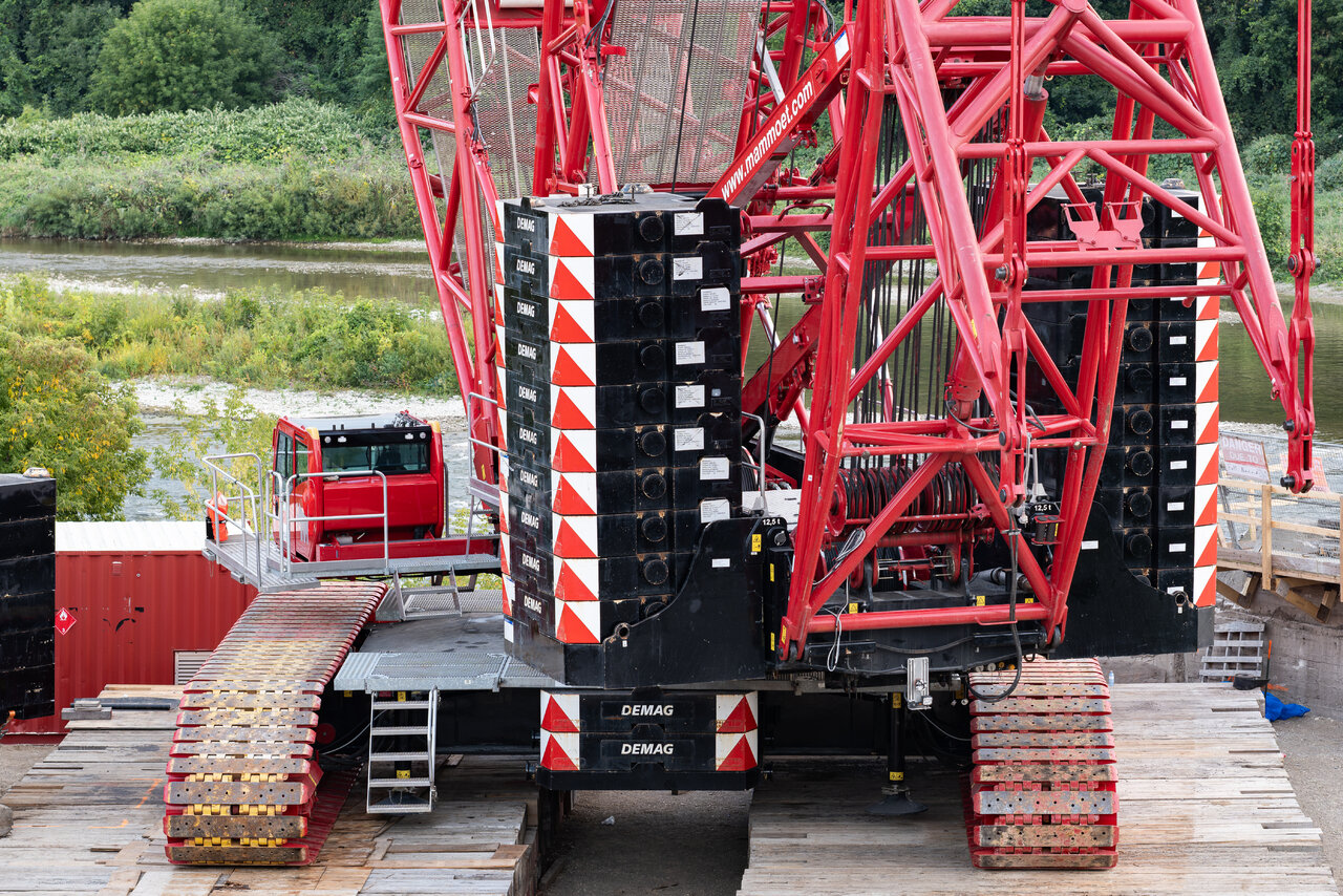 Removal of the old Grand Trunk 1913 built bridge spans with a Tadano CC38.650-1 650 Metric Tonne Crawler Crane owned by Mammoet. The existing piers will be repaired and reused. The bridge was built for the Grand Trunk Railway and later used by CN as part of their Burford Subdivision, with the last train crossing in the 90s and was abandoned by the in 1996 and converted for pedestrian use. The crane as seen in the photos, is currently being disassembled and will me moved to the other side of the river for the last span.
