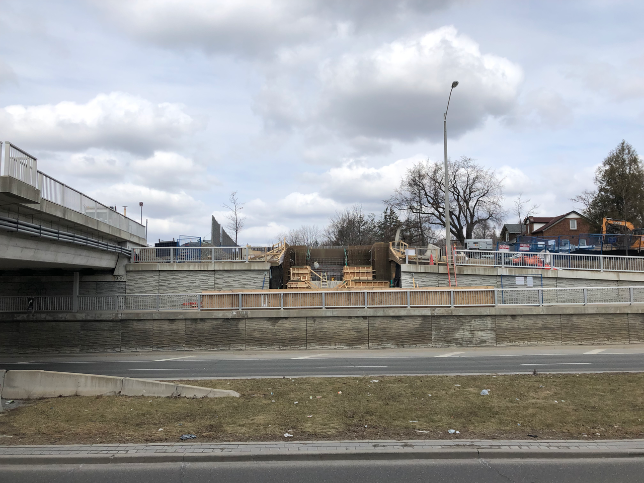 When were the condos towers built as well the Sheppard intersection been rebuilt to deal with the overpass? Add another 5 plus years onto that time to get to a date when it was known when the overpass was to be built.