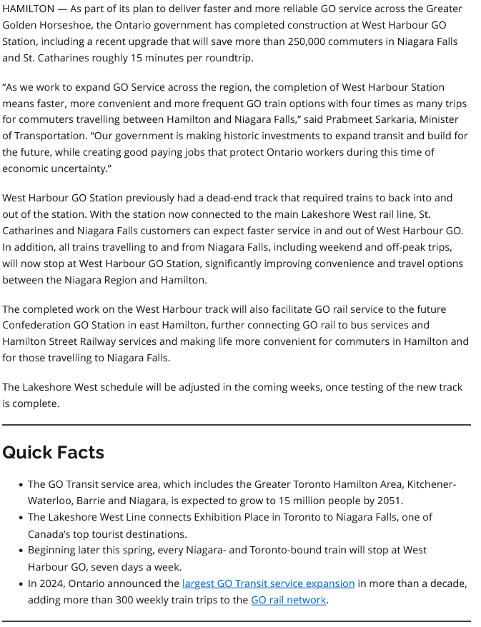 The province's Hamilton presser this morning is for completion of the West Harbour related works (including new track-tie in)
