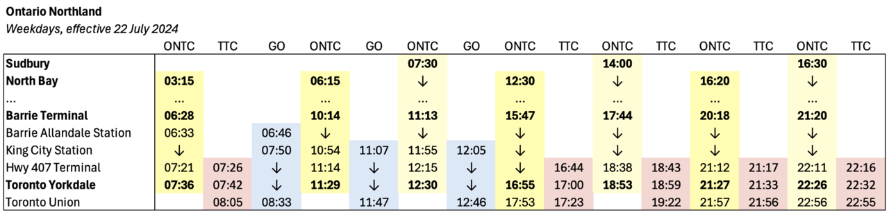 ONTC’S buses from Sudbury and North Bay all stop at Highway 407 Station now, and offers through ticketing to GO (including the Route 40 bus).