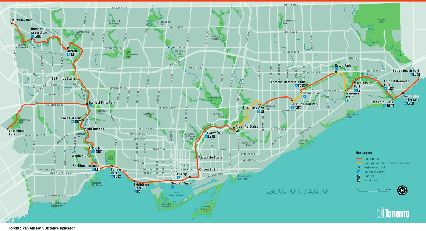 The whole Pan Am Path thing is actually pretty hilarious. For the money they spent on spray painting entrances to the trail and on very expensive and hard to find public art along the trail, they could have repaved the heavily used Don trail. The portion just north of the Athlete's Village is in terrible shape and after a rain stays flooded for days.