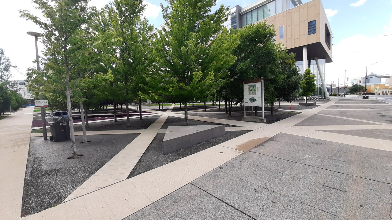 Here is another example. This below is a view of Lawren Harris Square. In the middle of the picture, we can see a bench. This bench quite obviously mounted on a slope. I believe that it is not comfortable to sit on this bench. All this place with those black tree pots, gravel floor, and the falling bench looks like a field for wrong experiments... Why does this bench look like a ship deck at a storm? Even mountain climbers at the height of 10000ft always try to find a flat surface to accommodate their tents. I tried to determine whether it is prohibited to install any seatings on a slope or not, and I couldn't find any information. That is just not mentioned anywhere globally. I can assume that this is because such a question even is not considered. The position of a hip of any human being at an angle to a backbone is unnatural, harmful, leads to rapid fatigue, and can be only temporary while doing work, sport, fight, etc., and never for resting. Although it can be seen as an exaggeration, in fact, that bench, gravel, any thoughtless design is a direct waste of our tax money.
