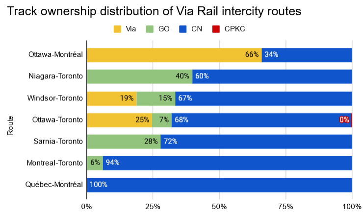 One thing I learned recently was that Via owned the tracks between Chatham and Windsor, yet CN still has operations there.