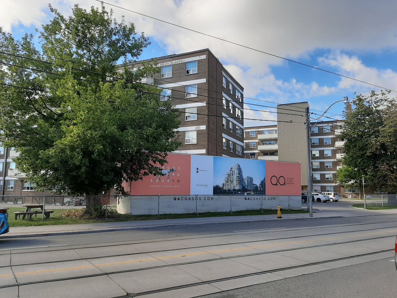 Queen Ashbridge is a mixed-use community featuring a 17-storey condominium, 17-storey rental residence and more than 16,000 sf of retail located at the corner of Queen Street East and Coxwell Avenue. Set between hip and trendy Leslieville and the historic Beaches, Queen Ashbridge offers lake views in an urban setting.