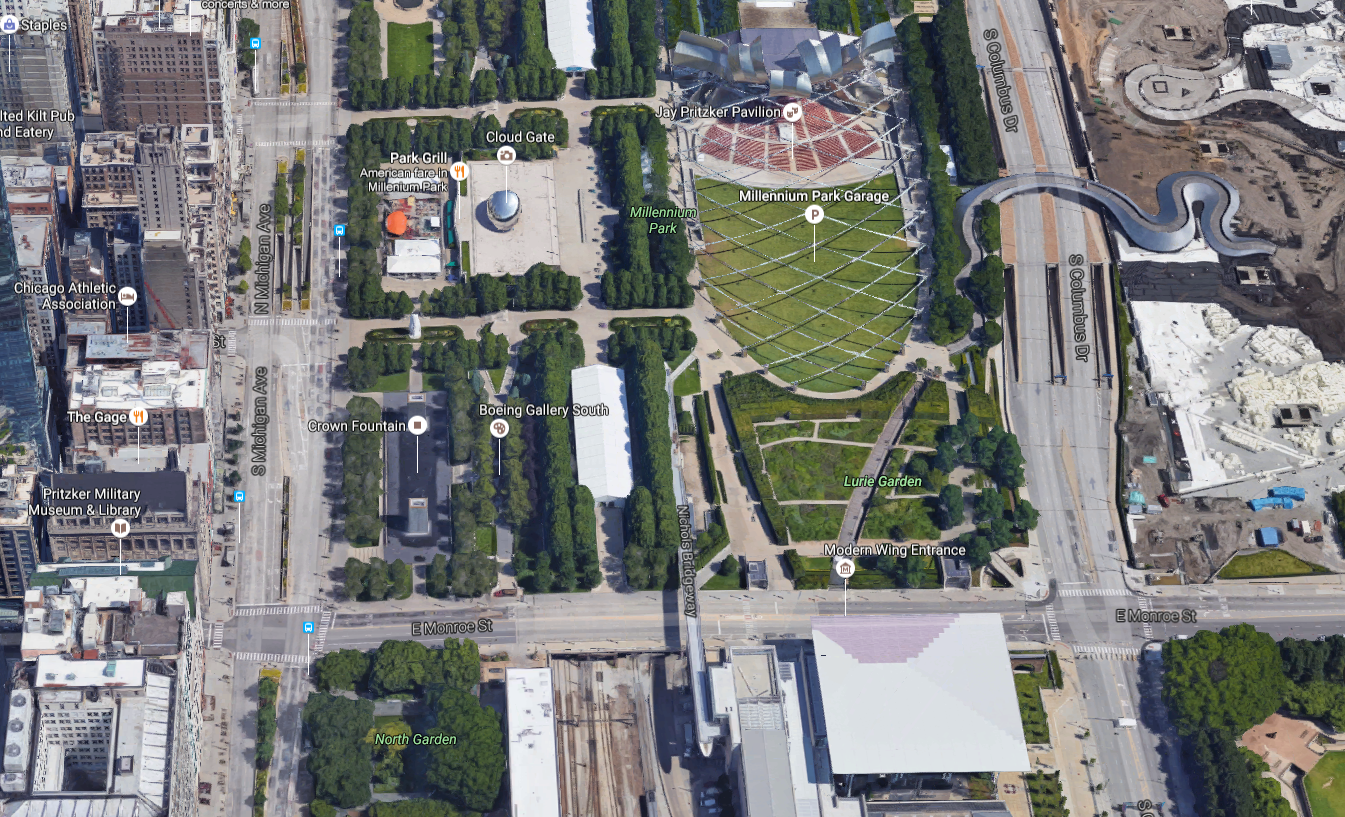 Uh huh.Millenium Park is awesome, and I have been there many many times! But you should realize it is not entirely built on platform - those trees you see are almost certainly planted in the ground (in fact, in the distance of that picture is probably Grant Park)