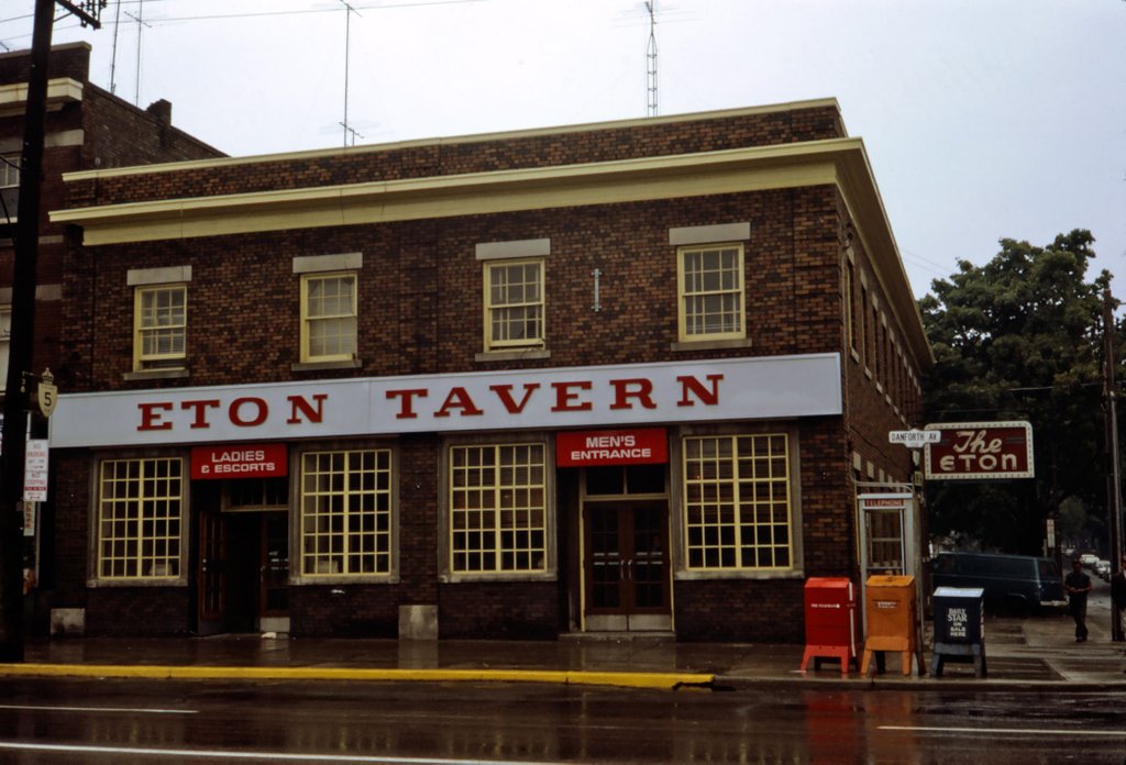 ETA: A Google search suggests that all of the laws involving separate men's and mixed company sections of taverns did not completely disappear until the 1970s, so photo probably dates back to the 60s or 70s. For no particular reason, the newspaper boxes suggest late 1960s to me.