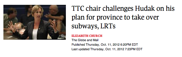 The current situation with the TTC is that, if the municipal government wanted to make a specific change like that, it would have to go through the TTC Board and publically debated. We'd lose that transparency at the provincial level.