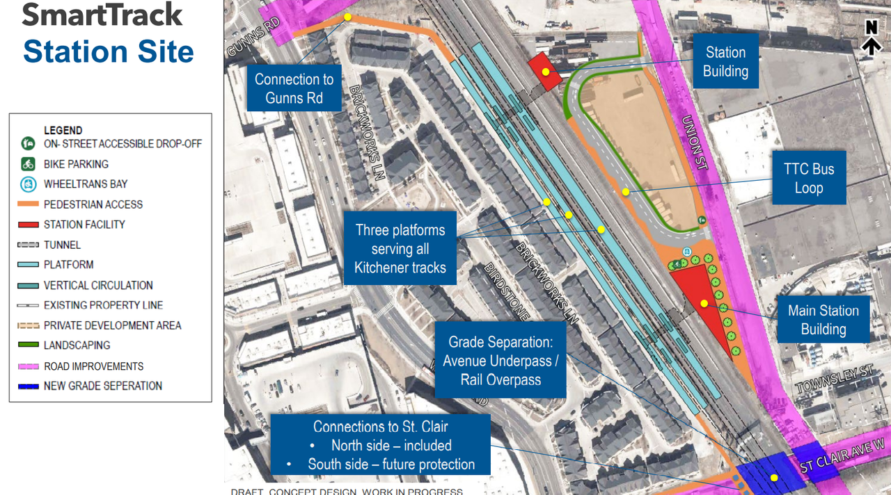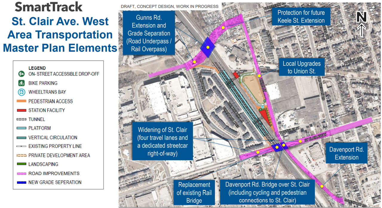 Interestingly, the station works seems to be building all of the St. Clair West Transportation Improvements except for the Keele St Extension south to Gunns Road - wonder how that will get built, perhaps part of the adjacent dev