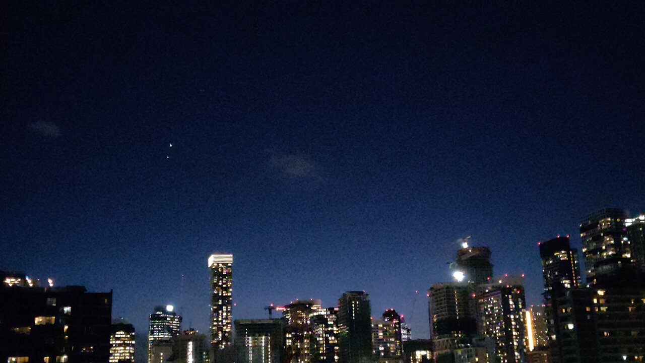 Best place I think for this. I noticed these super bright "stars" lined up tonight. I checked on it and apparently this is Venus and Jupiter in a rare alignment from the Earth perspective.