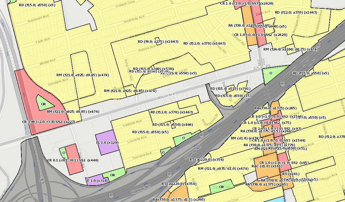 While rdaner indeed said "zoned". the reality of Toronto is that basically nothing is zoned for development. What matters more is the official plan designation, which does have a lot of mixed use areas around here which haven't seen a lot of development interest. In the map below, if it isn't purple, green. or yellow, it basically has development potential.