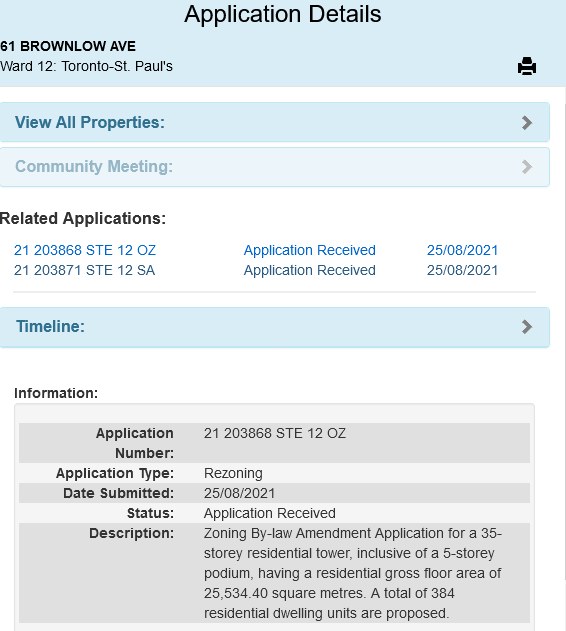 The aerial photo below, where Is show the site outlined in white indicates it is directly behind a new Bazis application on Mt. Pleasant, south of Eglinton, and directly south of Eglinton Public School!