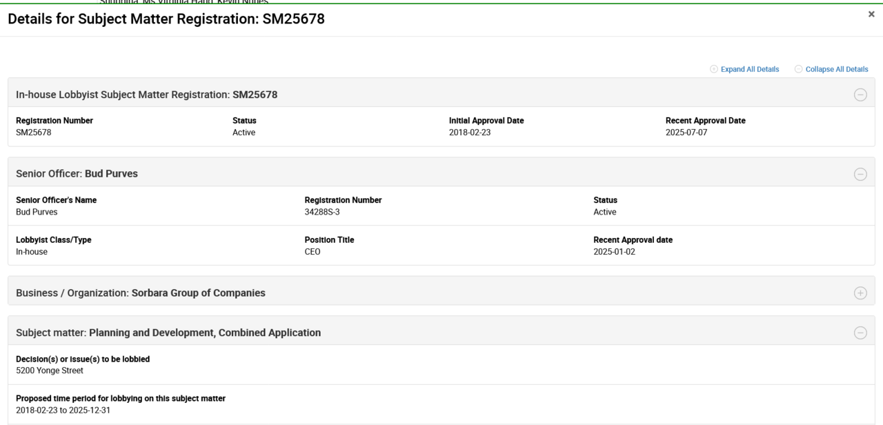 Sorbara likely renewing lobbying,... to get some of their unsellable/empty Office Space converted to more sellable/lease-able Retail Space or at least more liberal Office usage like International Private Schools, Massage Parlours, etc,...