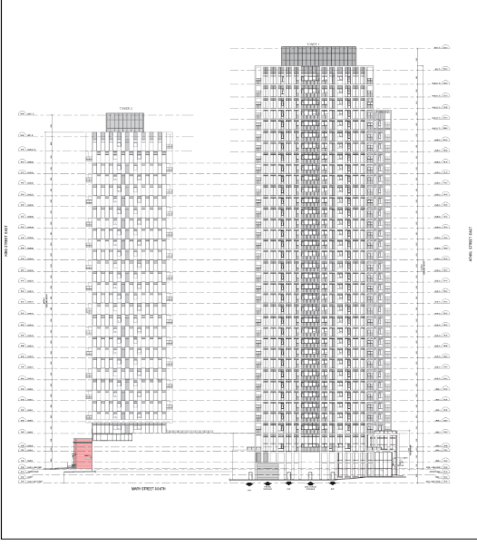 Centra: a proposed 22, 22, 22 & 16-storey mixed-use residential, retail and health care development by Atria Development on the south side of King Street East, west of Charles Street and east of Mary Street North in Downtown Oshawa.