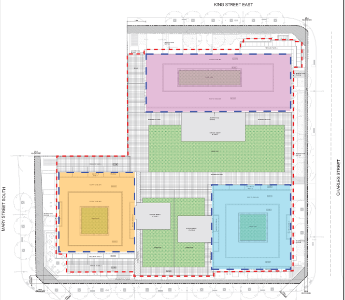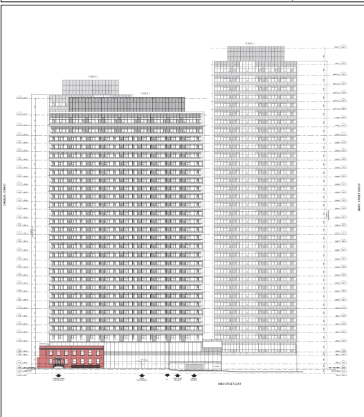 Overview rendering of Site A (111 King) and Site B (29 Charles):