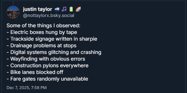 And yet, as an Eglinton resident I still envy the people who have it to ride. A lot can be forgiven once a usable transit line is actually delivered.After seeing a post yesterday of all the unfinished pieces on Line 6's opening day, it doesn't give me great confidence in Eglinton. Many are cosmetic pieces, but a couple made me wince.