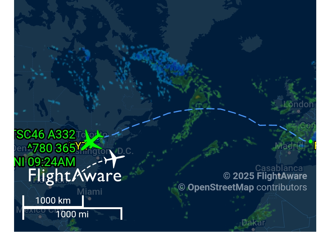 Perhaps a charter of die-hard bullfighting fans.That Air Transat flight to Nimes just took off (~20:30h)