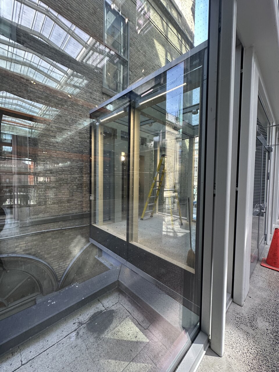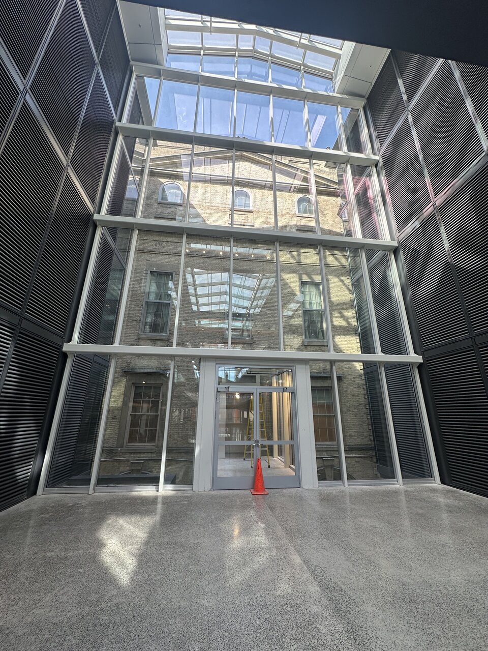 The building suffered from a similar problem as Foster's Pharmacy building at U of T - the expanse of drywall at the mezzanine is just awful, and there are execution problems all around (that blotched terrazzo is especially bad).