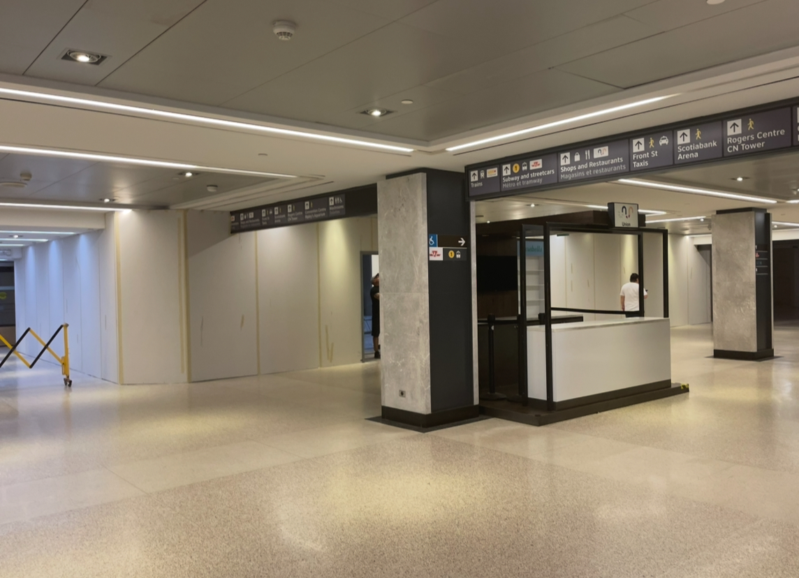 On Front Street, where the land slopes away at York and Bay streets (and therefore water is not likely to rise more than a couple centimetres on the sidewalk), a single step up should do the trick. At the moat entrances along York and Bay Streets, grilles with cisterns below may be needed assuming they don't want to lose barrier-free access.