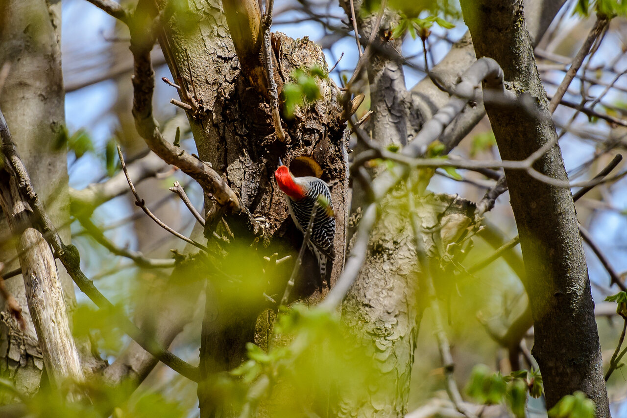 There are some in High Park that can be seen and even more frequently heard (a bird sound app on your phone can identify their noise if you don't recognize it).... to find a Red Bellied Woodpecker on your property, they're relatively rare in Toronto, we're at the northern limit of their range...