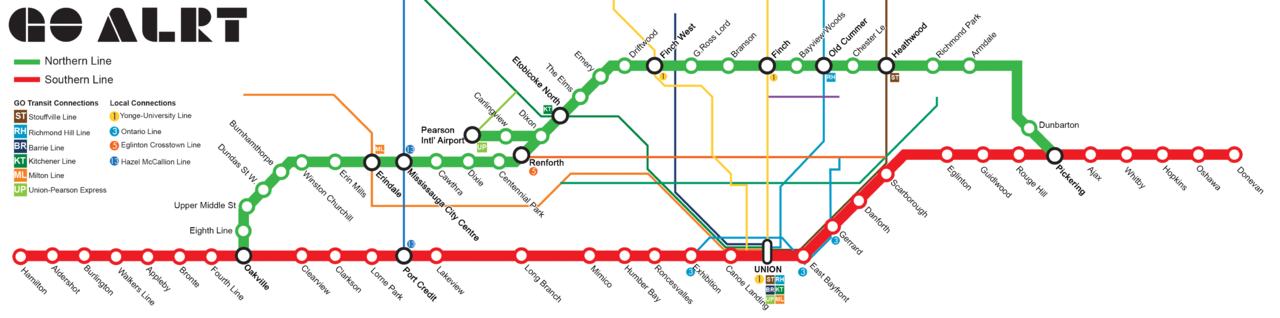 - Trying to figure out how to connect the Midtown line with the LSE line. GO would have to construct a rail bridge parallel with CN's running to Pickering. GO would need to figure out how to triple track to Pickering GO. Not sure if there's space for that without interfering with CN.
