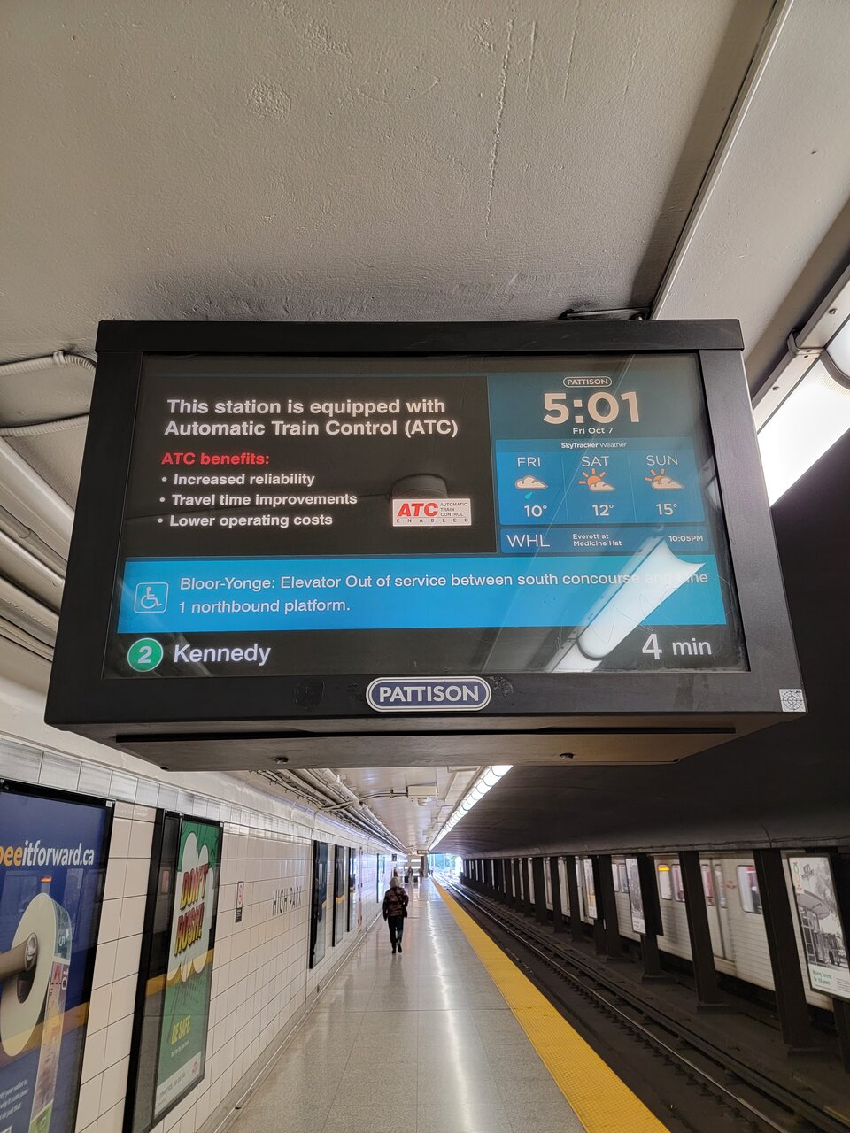 The terms of their contract with the TTC states that some small percentage - something like 10% - out of all of their advertising must be made available to the TTC for informational programming.