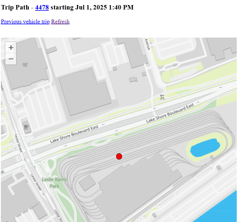 I was told this week that they saw a TTC car on a flat deck a few weeks ago and couldn't give me a number, but supposed to be red. He may have seen one of the heritage cars being relocated and so far no info of an Flexity being shipped on a flat deck to Alstom Brampton plant for work on it. Odd it would be shipped to Brampton, not TB let alone why..