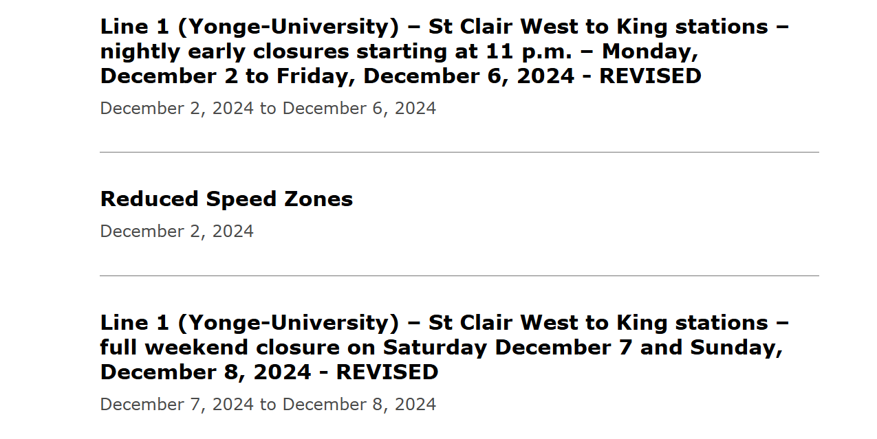 this was updated Dec 10. a bunch of the slow zones went awayWell it seems like after 2 full weekend closures and 1 full week of early nightly subway closures, the only net benefit riders are getting is the removal of the St.George to Spadina speed restriction.