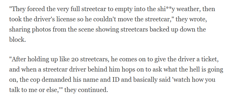 If this is true, "someone" at TPS needs to get their act together. See https://www.blogto.com/city/2023/11/cop-tickets-ttc-streetcar/