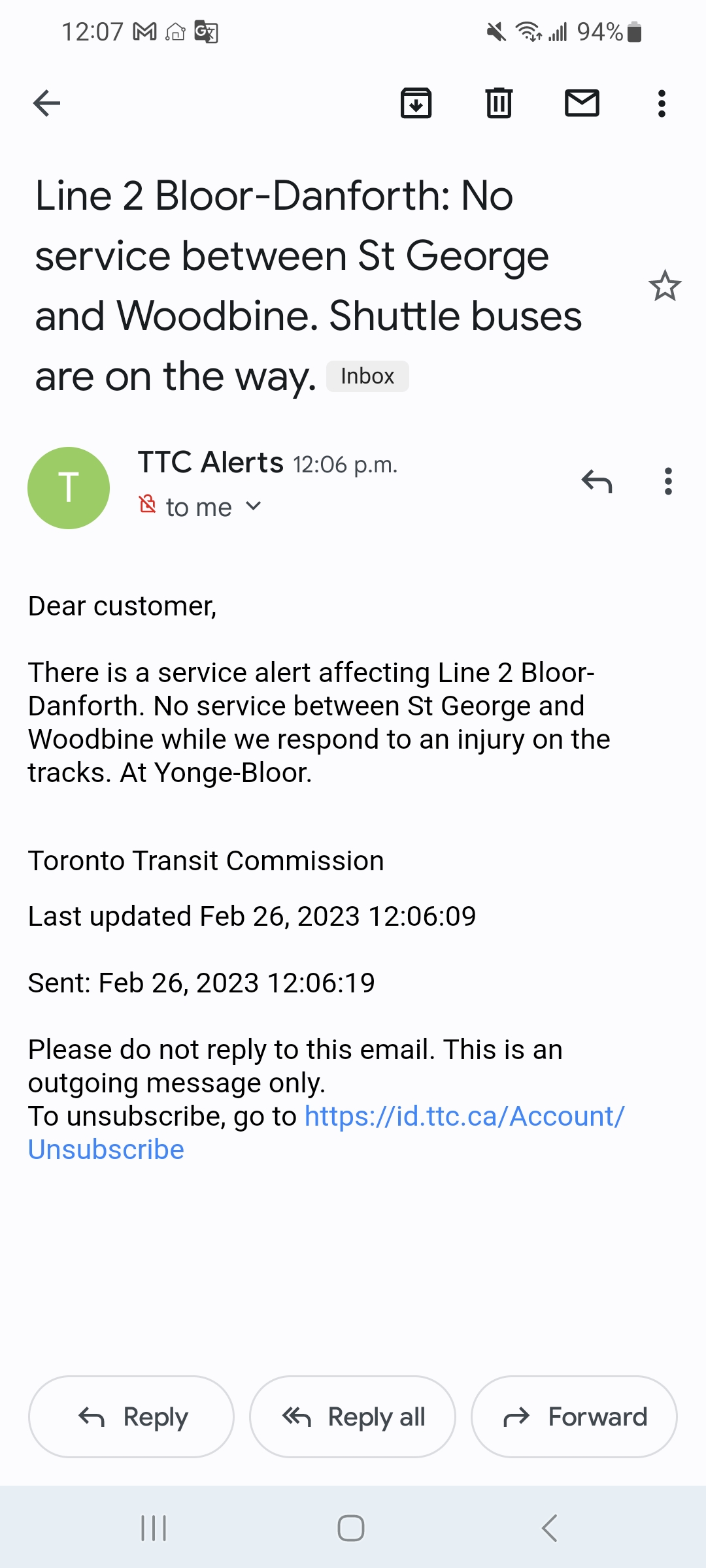 Both times it has been St George to Woodbine despite the incidents occurring well clear of Broadview or Woodbine.