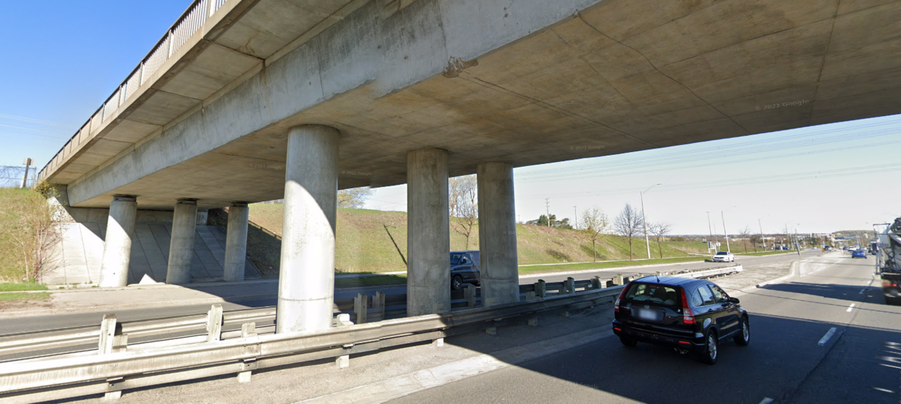 I can't make up my mind on 9th Line or Steeles, both look like twin track design from underneath and have one up on top now, but the one on top the aerial view is not convincing as to sufficient room for twin track.