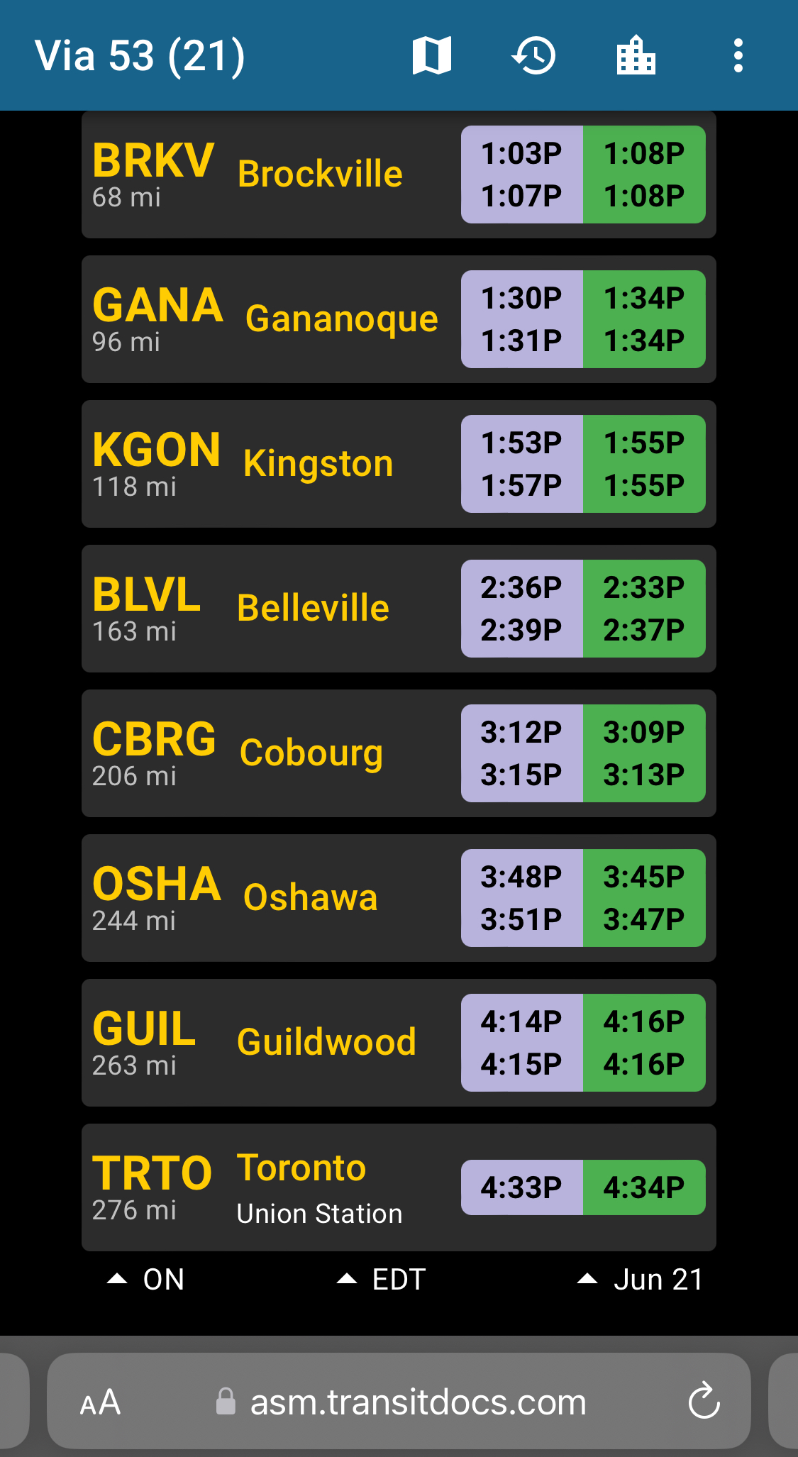 I'm currently on VIA train #53 from Ottawa to Toronto.