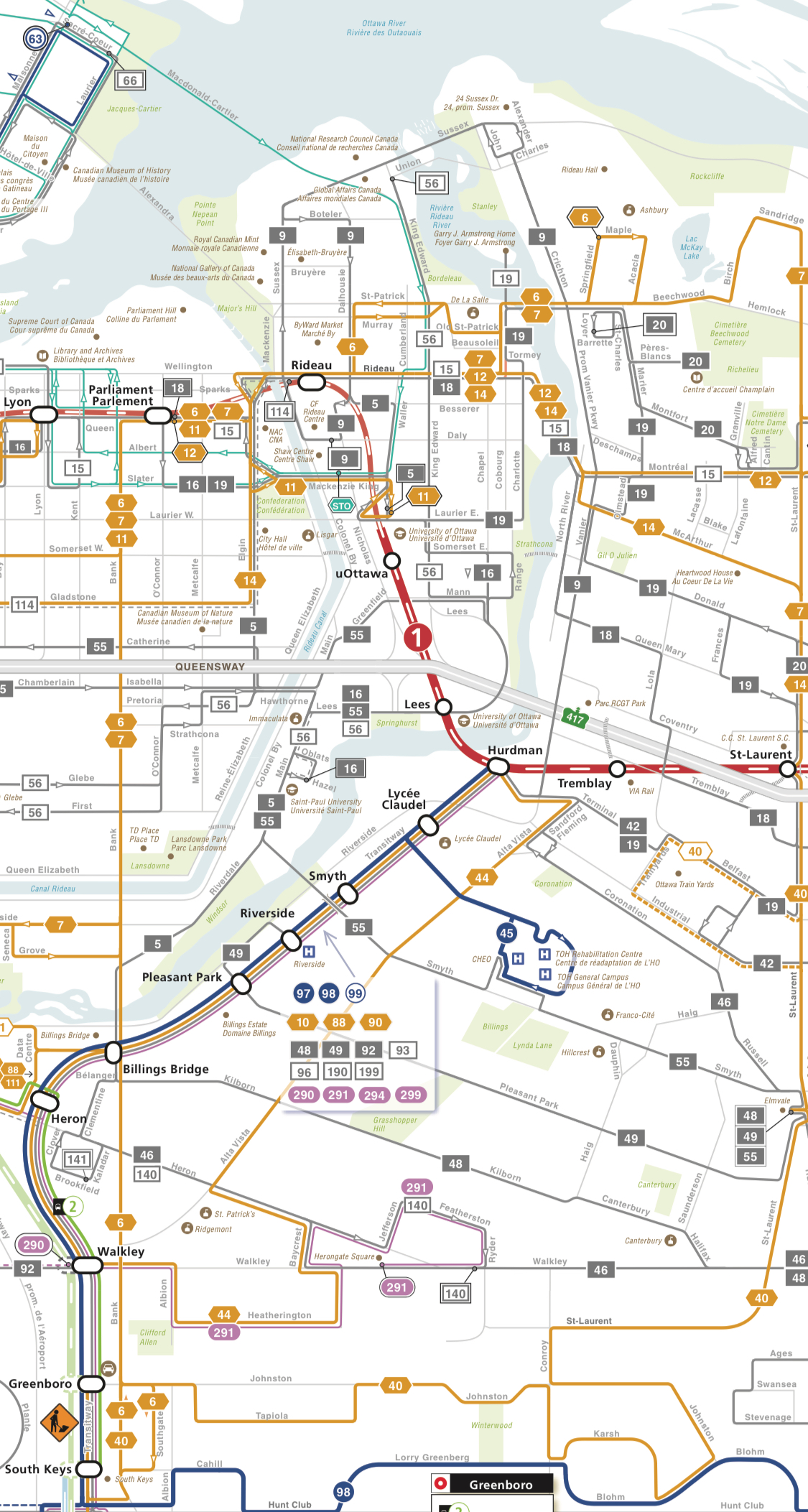Have a look at OC Transpo‘s actual transit map to check how „prominently“ they highlight the rail station: