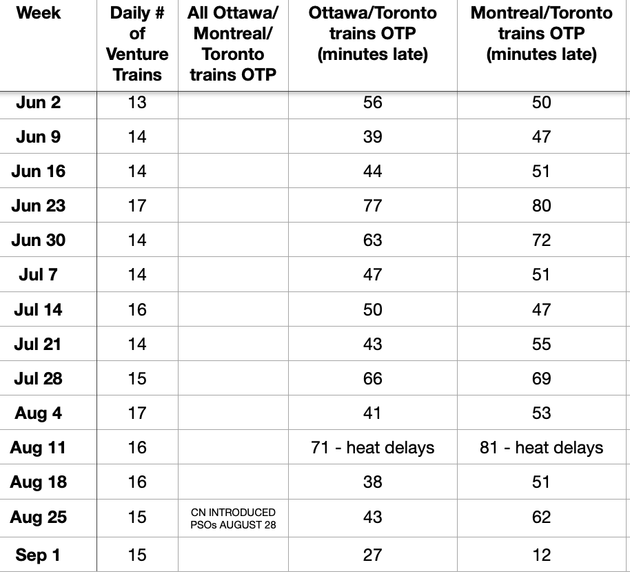 I'm not so sure. Yes, there has been improvement with the introduction of CN's PSOs. The 'real time' or 'ahead of schedule' arrivals only pertained to the flawed, failed and forgotten direct-service pilot for four trains per day. I did not hear VIA promising improvements to Venture OTP otherwise. Yes, capturing an 85% OTP in one window of time is great!