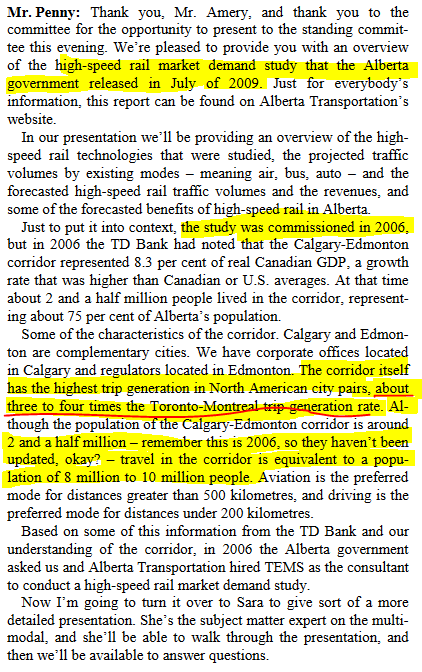That's insane if they think there's a business case for HSR between two metros of 1.3 million that are 300 km apart (centre to centre) in Alberta.